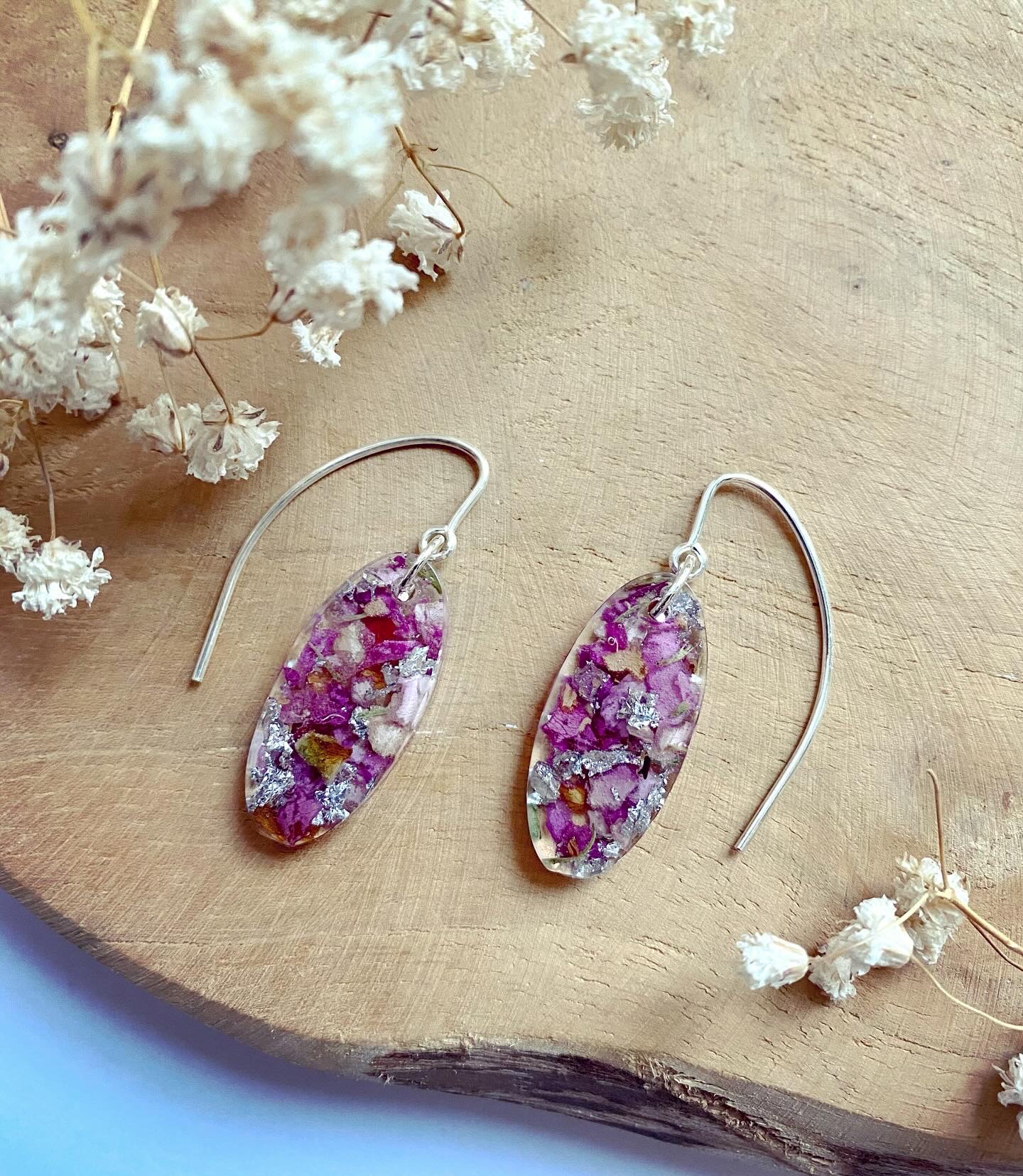 Set s pravými sušenými květy růžové Růže a stříbrnými plátky.Komponenty: háčky a kroužky - stříbrné Ag925.