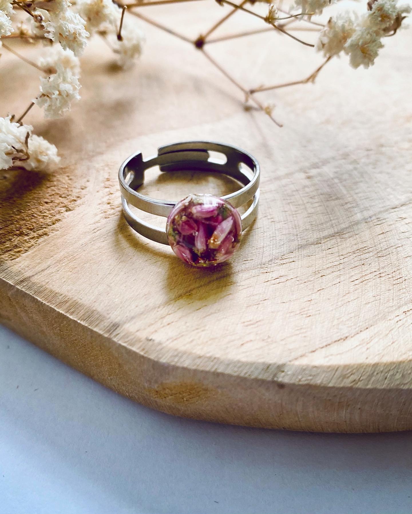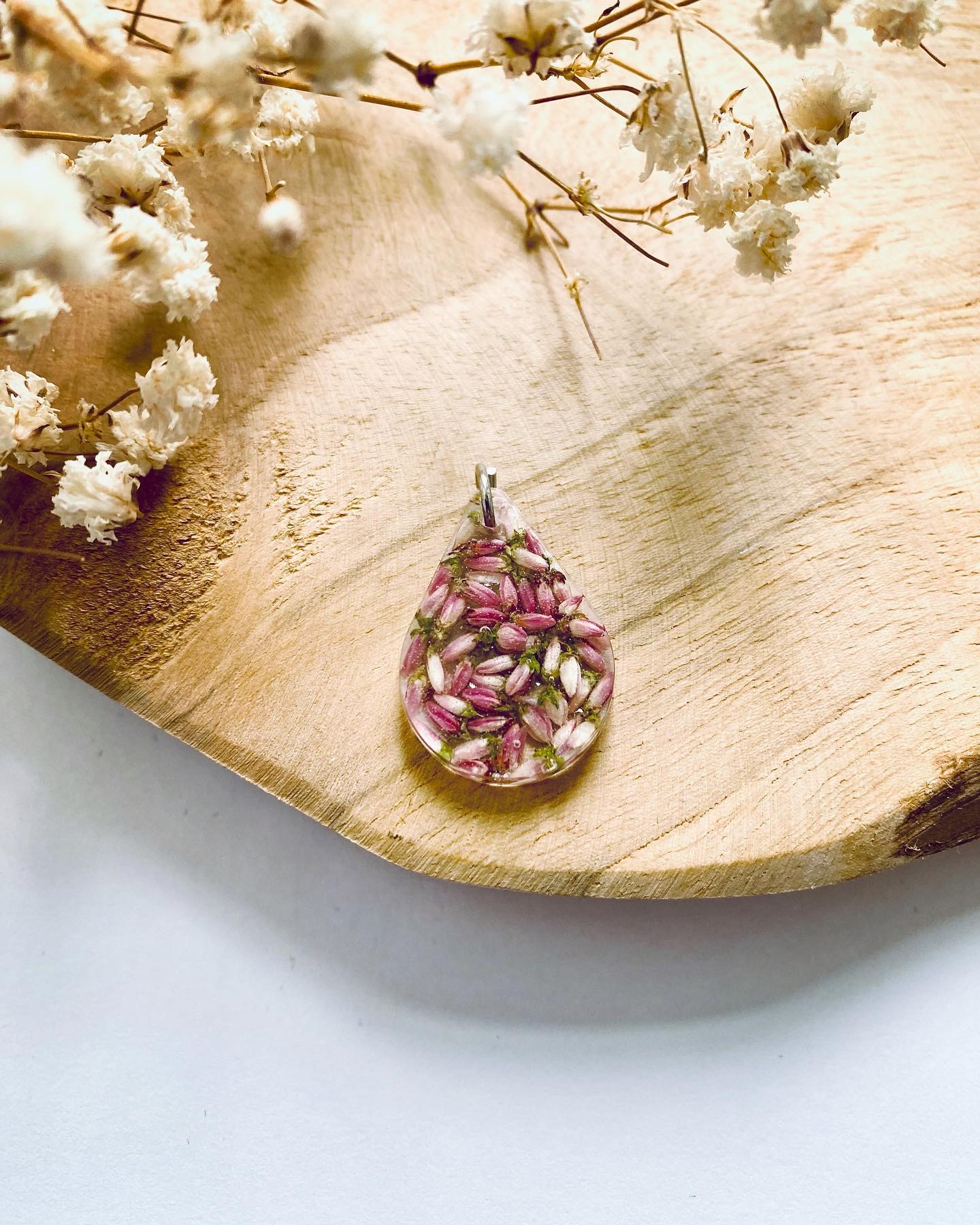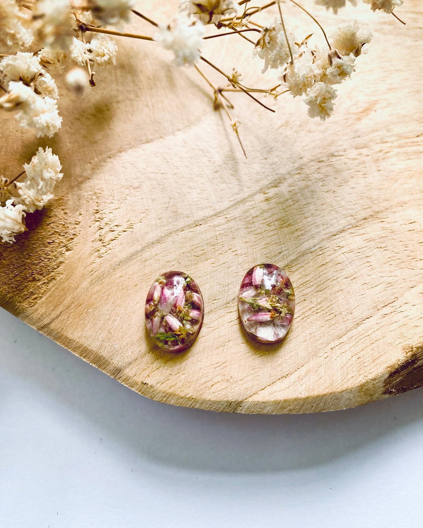 Set s pravými sušenými květy růžového Vřesu.Set obsahuje:náušnice na puzetypřívěsek prstýnek