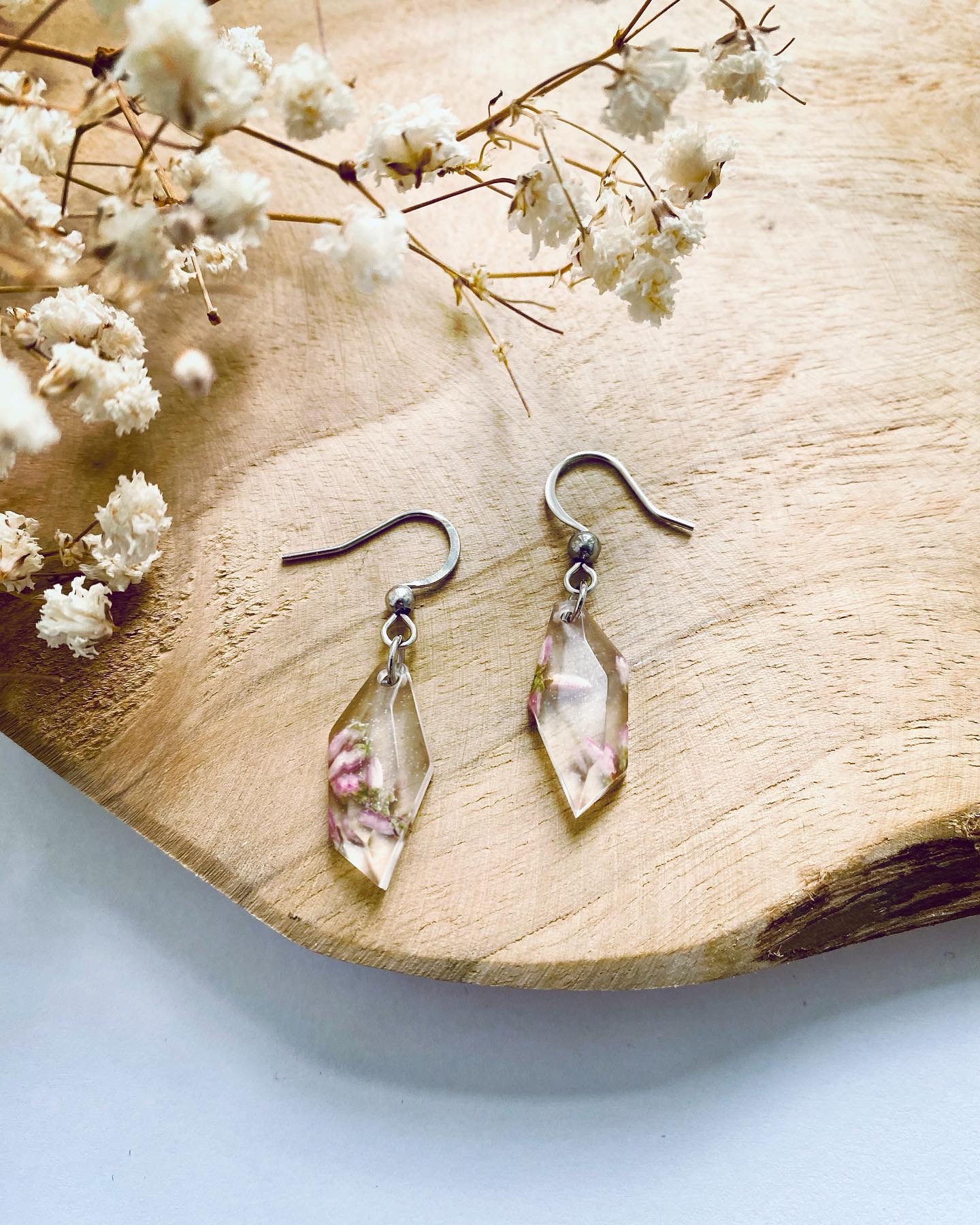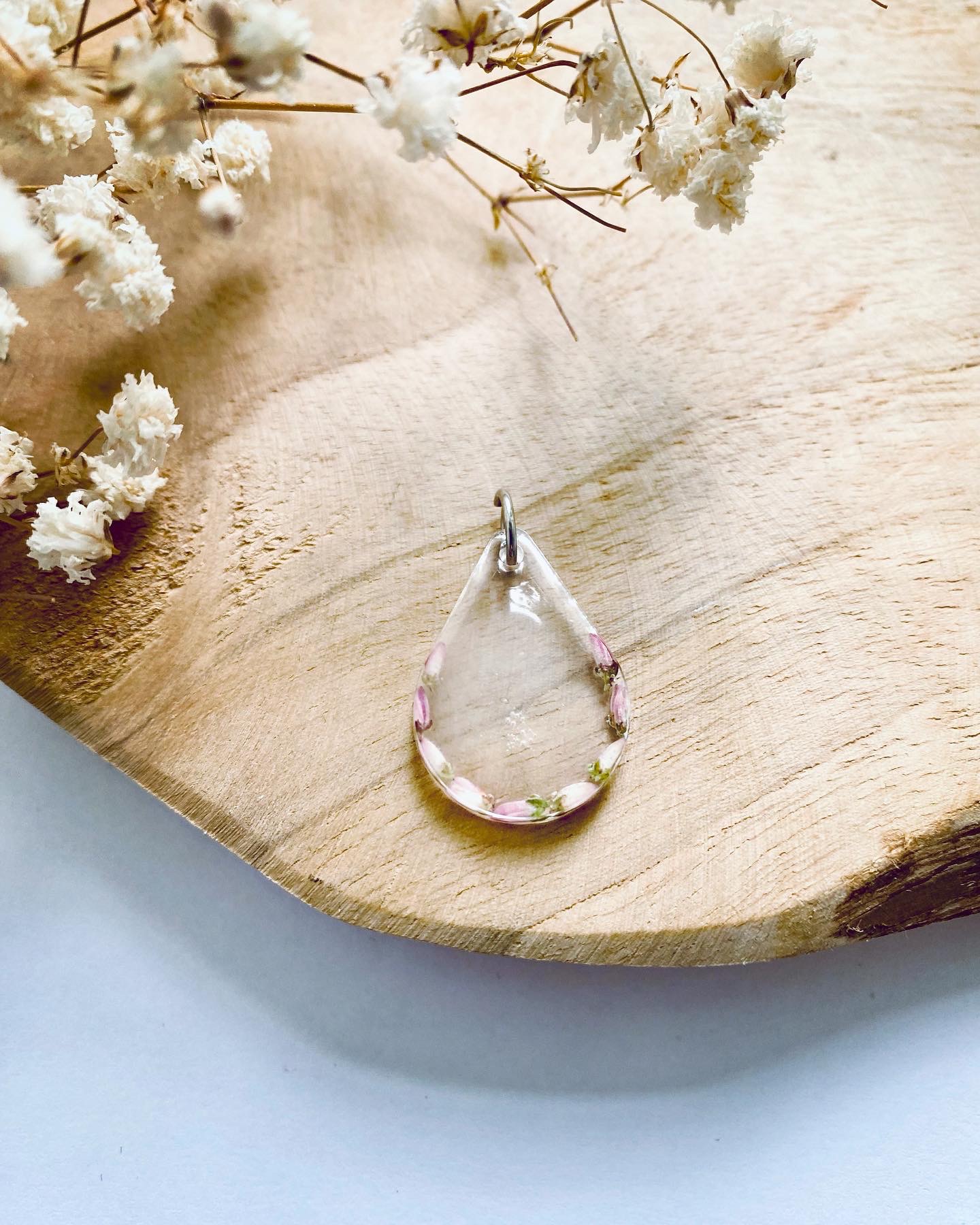 Set s pravými sušenými květy růžového Vřesu. Set obsahuje:visací náušnicepřívěsekprstýnek