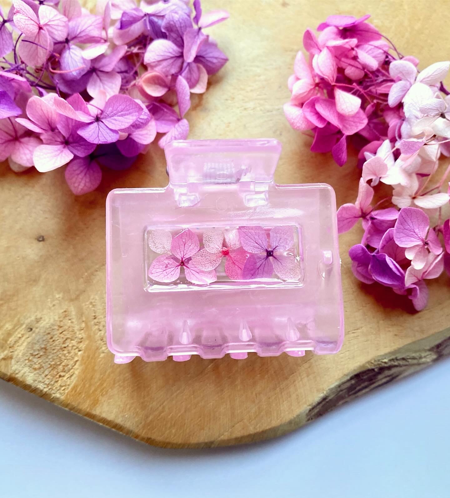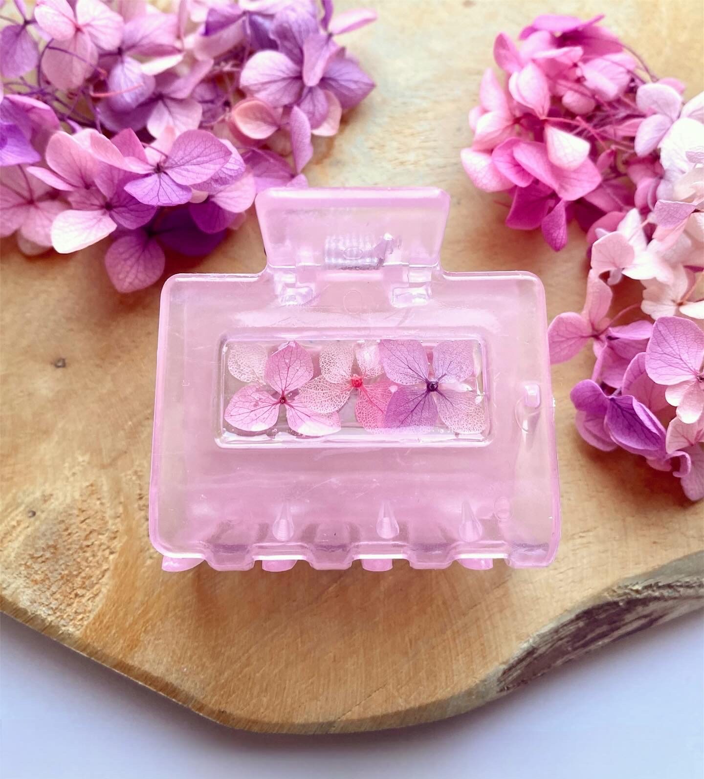Skřipec do vlasů s pravými sušenými květy Hortenzie.Velikost: 5 cm.Barva skřipce: světle růžová