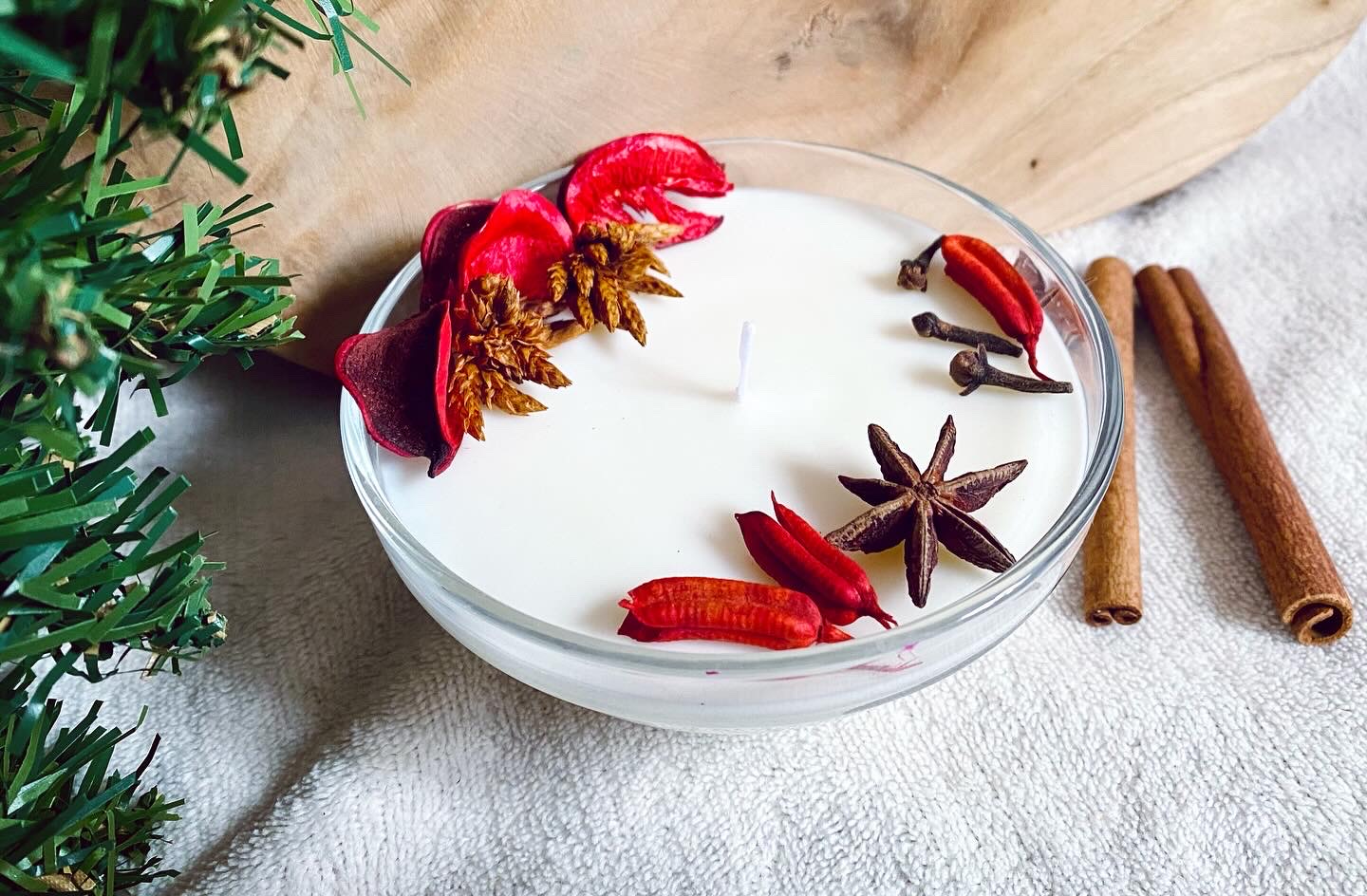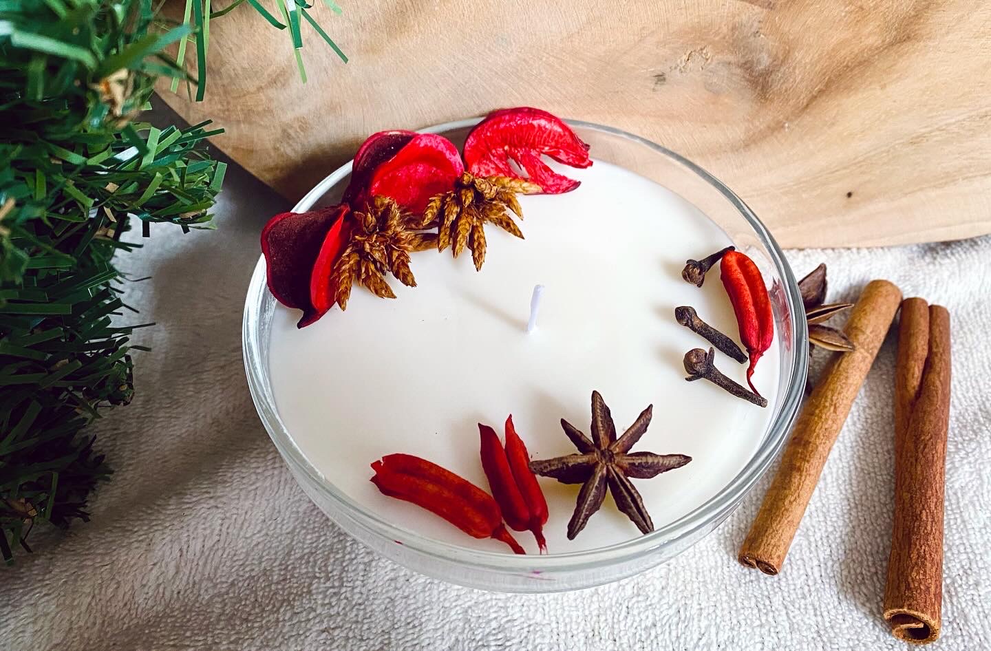 Ručně vyrobená svíčka ze 100% Sojového vosku obohacená o kouzlo Vánoc a Podzimu.