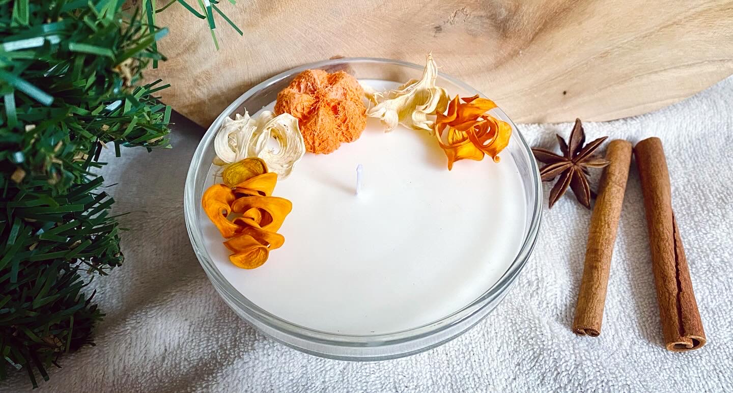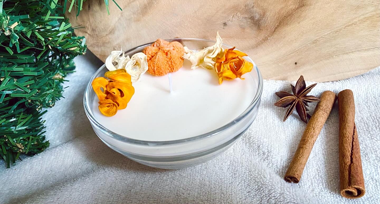Ručně vyrobená svíčka ze 100% Sojového vosku obohacená o kouzlo Vánoc a Podzimu.