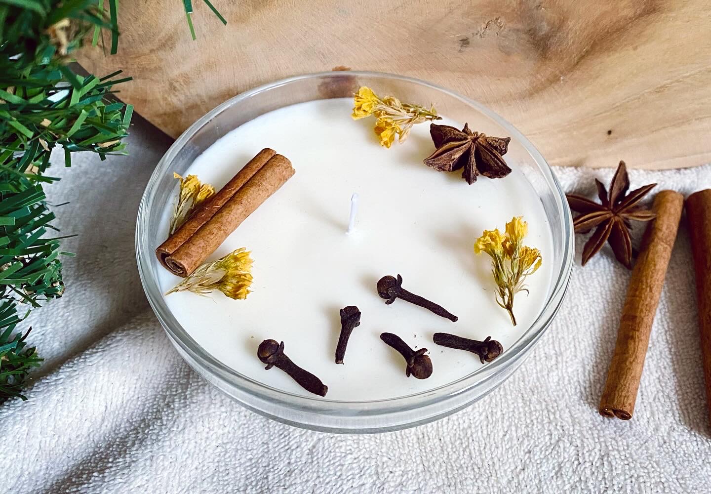 Ručně vyrobená svíčka ze 100% Sojového vosku obohacená o kouzlo Vánoc a Podzimu.