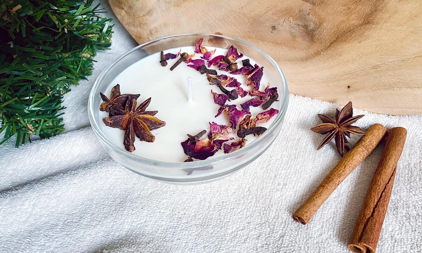 Ručně vyrobená svíčka ze 100% Sojového vosku obohacená o kouzlo Vánoc a Podzimu.