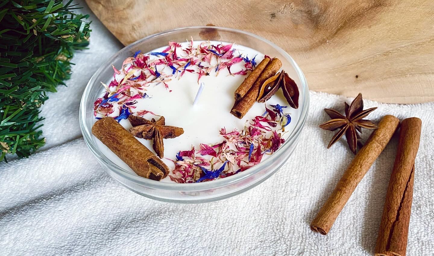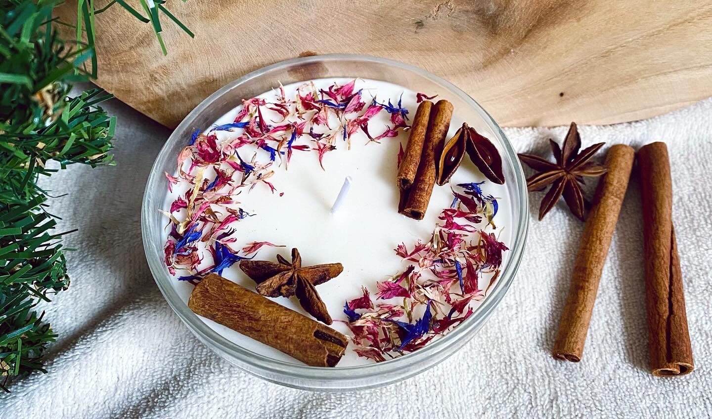 Ručně vyrobená svíčka ze 100% Sojového vosku obohacená o kouzlo Vánoc a Podzimu.