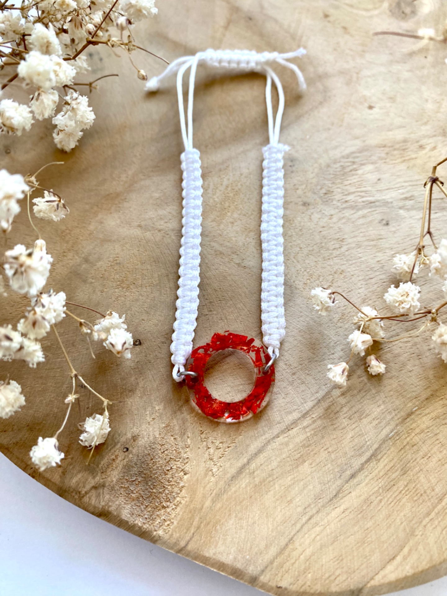 Spojovací díl na náramek s pravými sušenými květy červené Růže.Velikost: 2 cm.Součástí spojovacího dílu jsou kroužky z chirurgické oceli.(Cena je uvedena bez náramku)