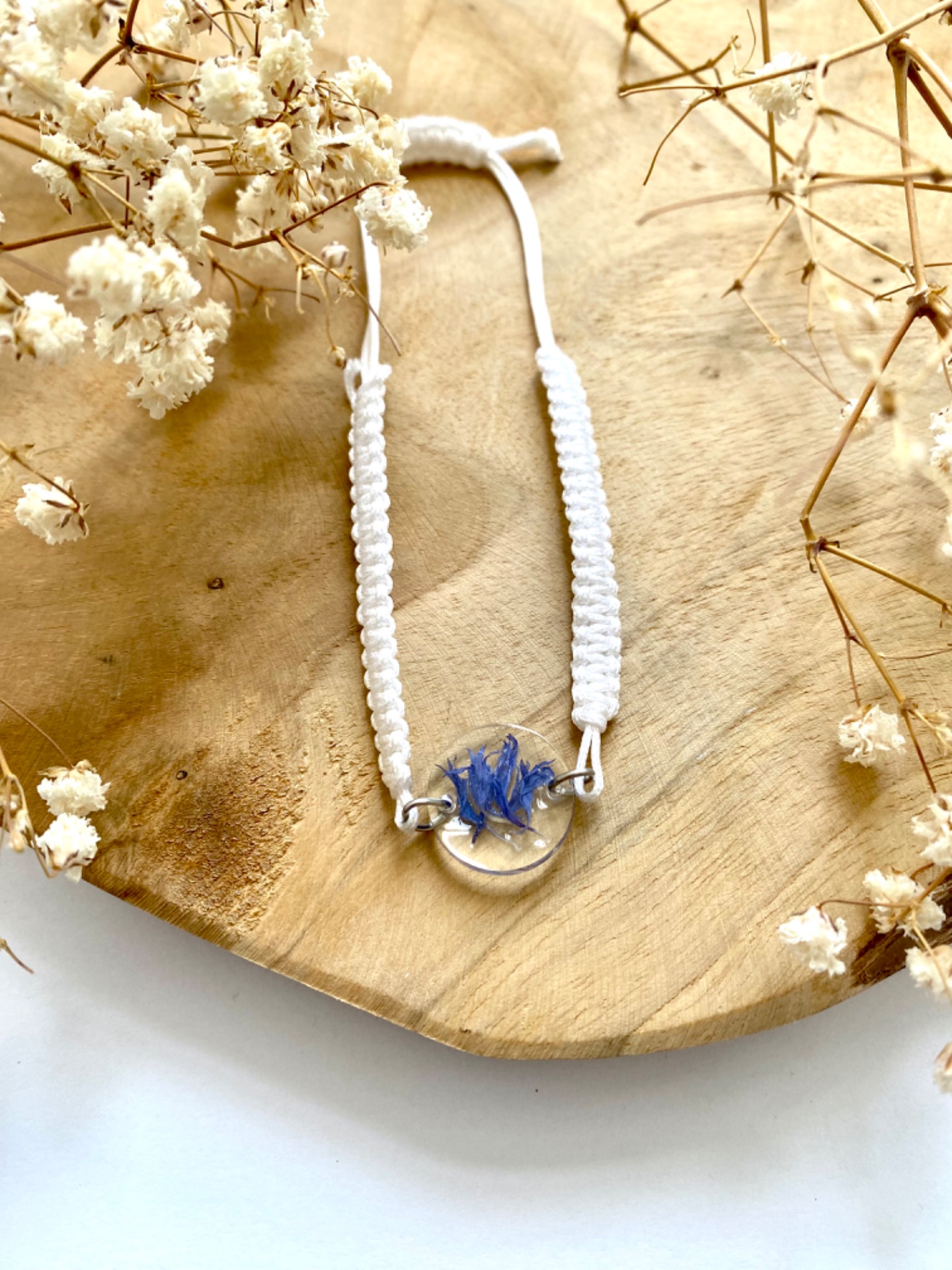 Spojovací díl na náramek s pravými sušenými květy Chrpy.Velikost: 1,5 cm.Součástí spojovacího dílu jsou kroužky z chirurgické oceli.(Cena je uvedena bez náramku)
