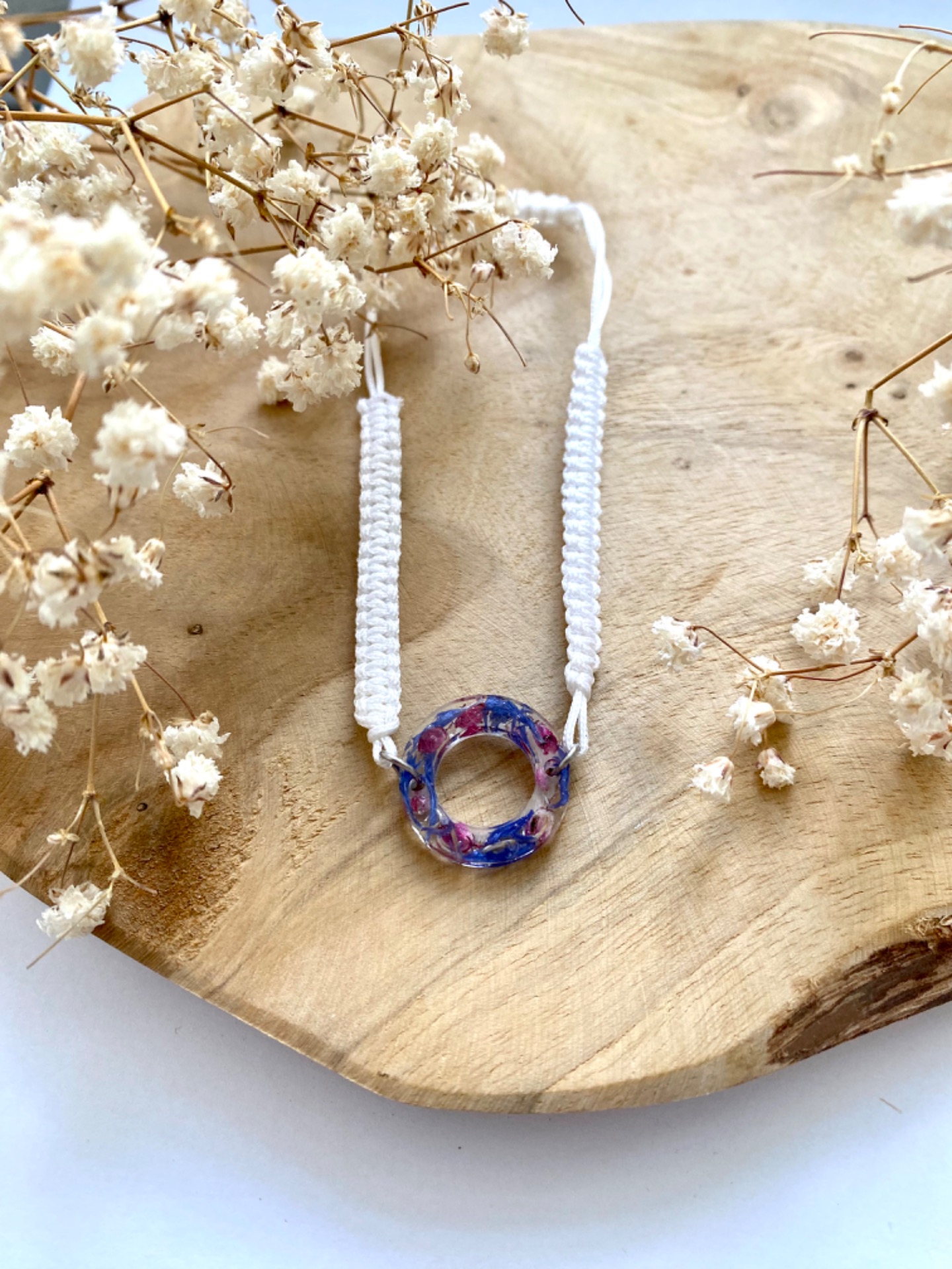 Spojovací díl na náramek s pravými sušenými květy Chrpy a Vřesu Erica.Velikost: 2 cm.Součástí spojovacího dílu jsou kroužky z chirurgické oceli.(Cena je uvedena bez náramku)