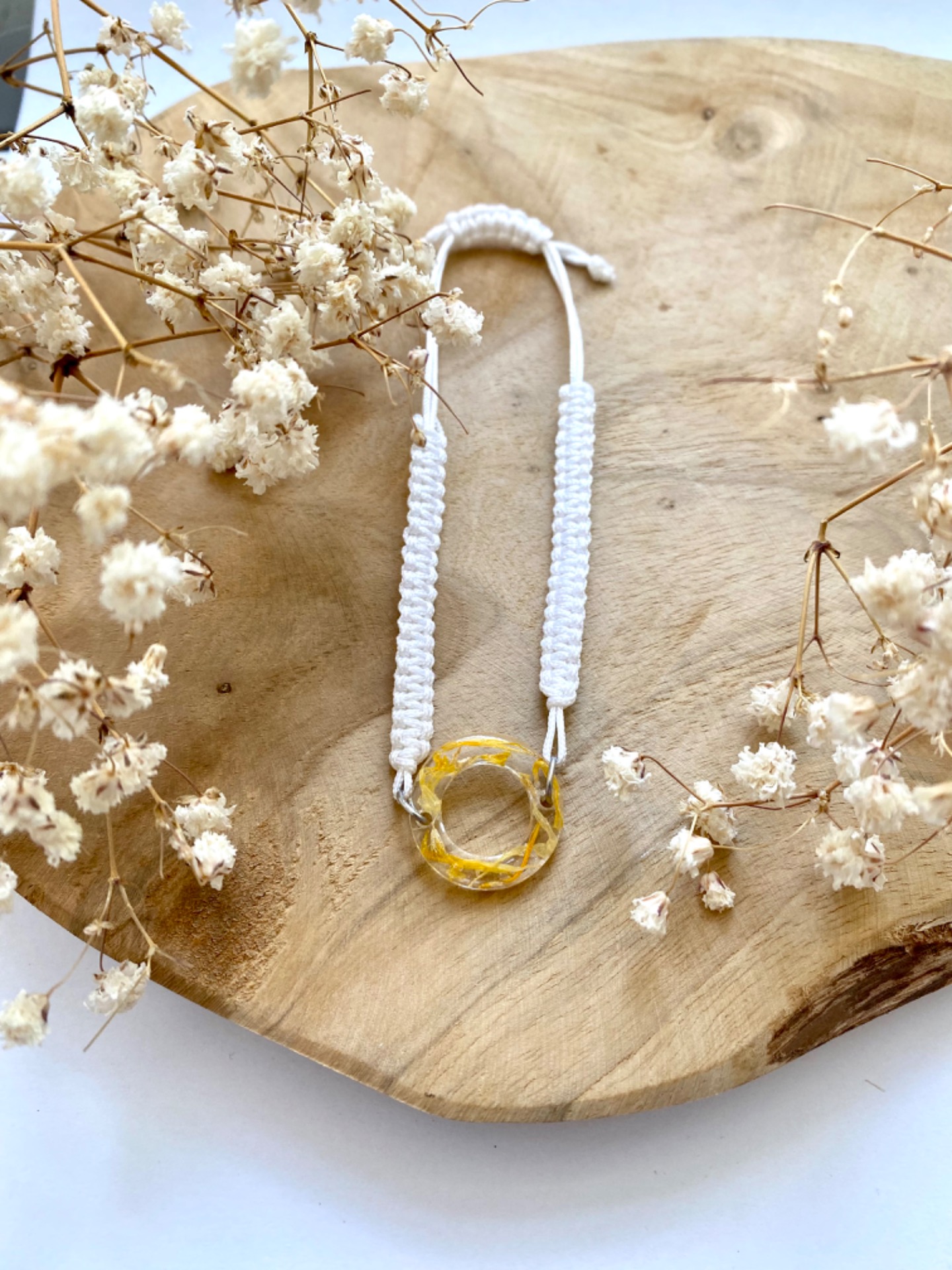 Spojovací díl na náramek s pravými sušenými květy Měsíčku.Velikost: 2 cm.Součástí spojovacího dílu jsou kroužky z chirurgické oceli.(Cena je uvedena bez náramku)