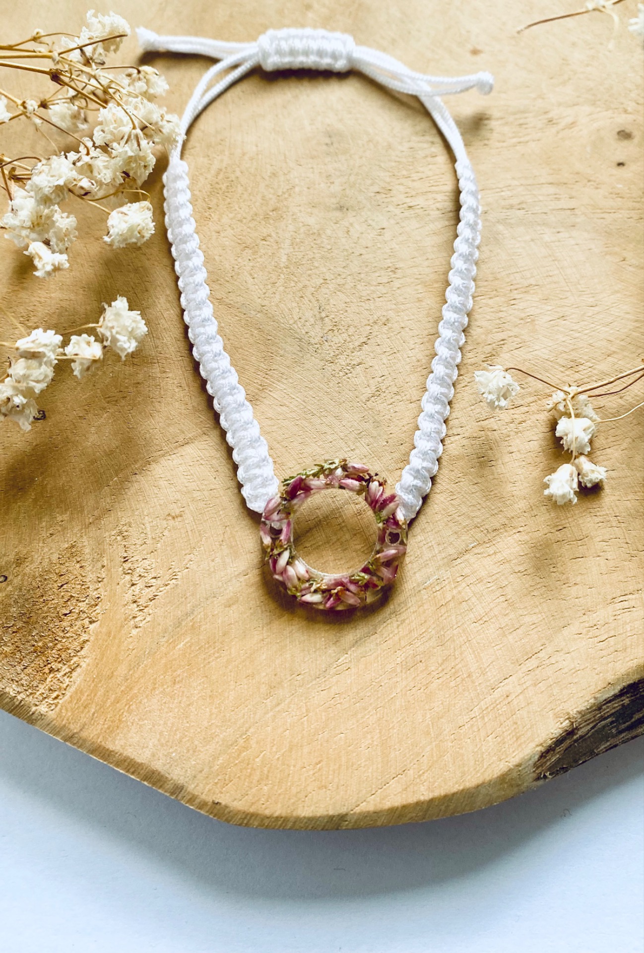 Spojovací díl na náramek s pravými sušenými květy růžového Vřesu.Velikost: 2 cm.Součástí spojovacího dílu jsou kroužky z chirurgické oceli.(Cena je uvedena bez náramku)