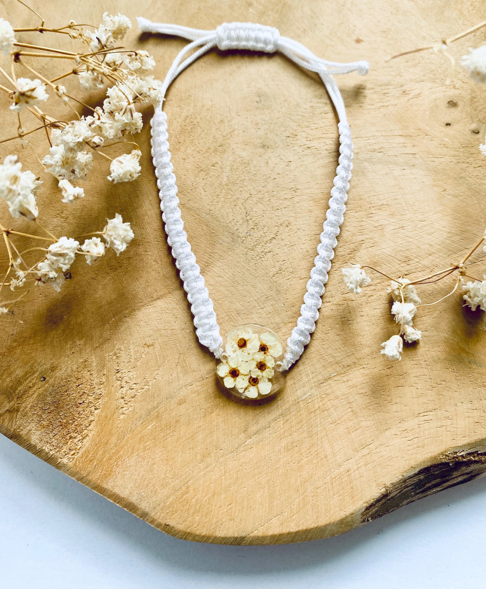 Spojovací díl na náramek s pravými sušenými květy Tavolníku.Velikost: 1,5 cm.Součástí spojovacího dílu jsou kroužky z chirurgické oceli.(Cena je uvedena bez náramku)