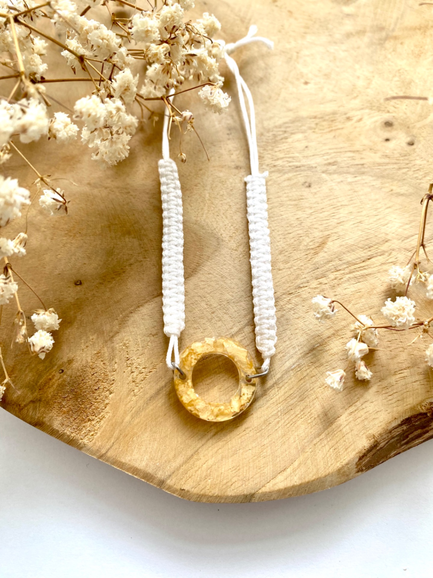 Spojovací díl na náramek s pravými sušenými květy žluté Růže.Velikost: 2 cm.Součástí spojovacího dílu jsou kroužky z chirurgické oceli.(Cena je uvedena bez náramku)