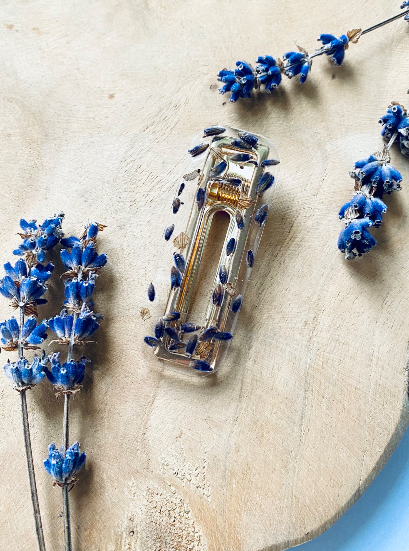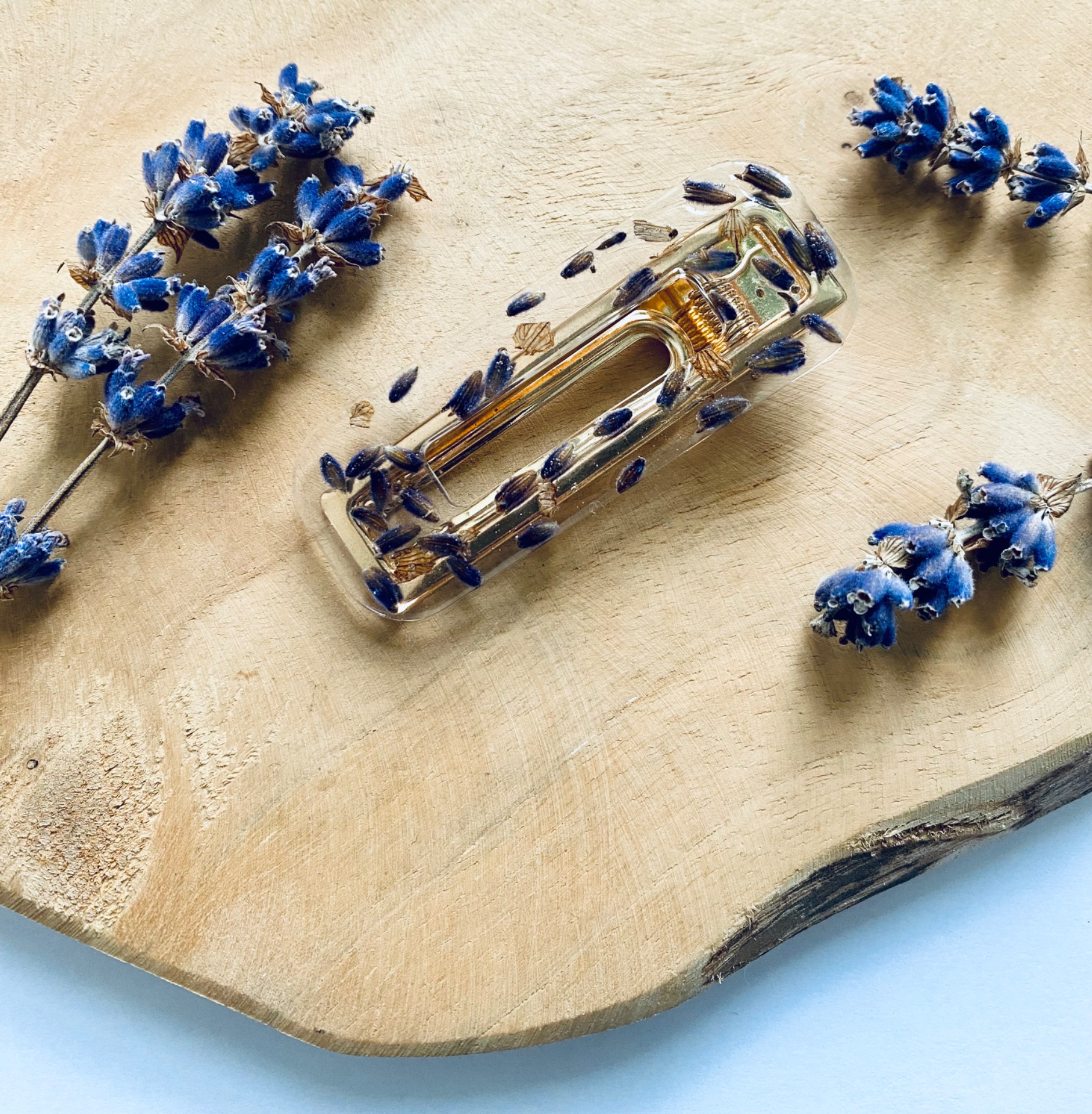 Spona do vlasů s pravými sušenými květy Levandule. Velikost: 6 cm.