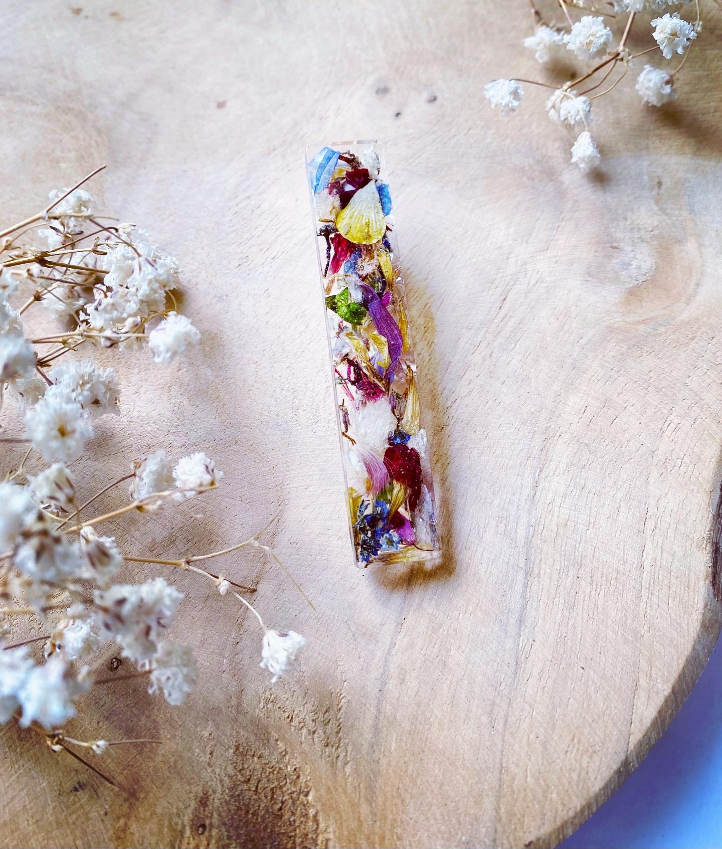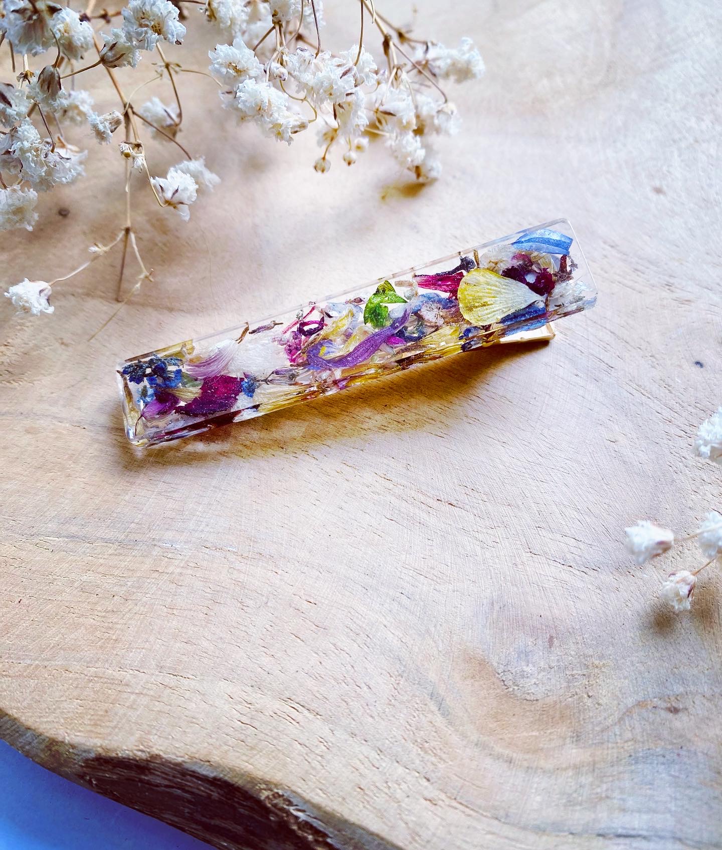 Spona do vlasů s pravými sušenými květy lučního kvítí. Velikost: 6 cm.