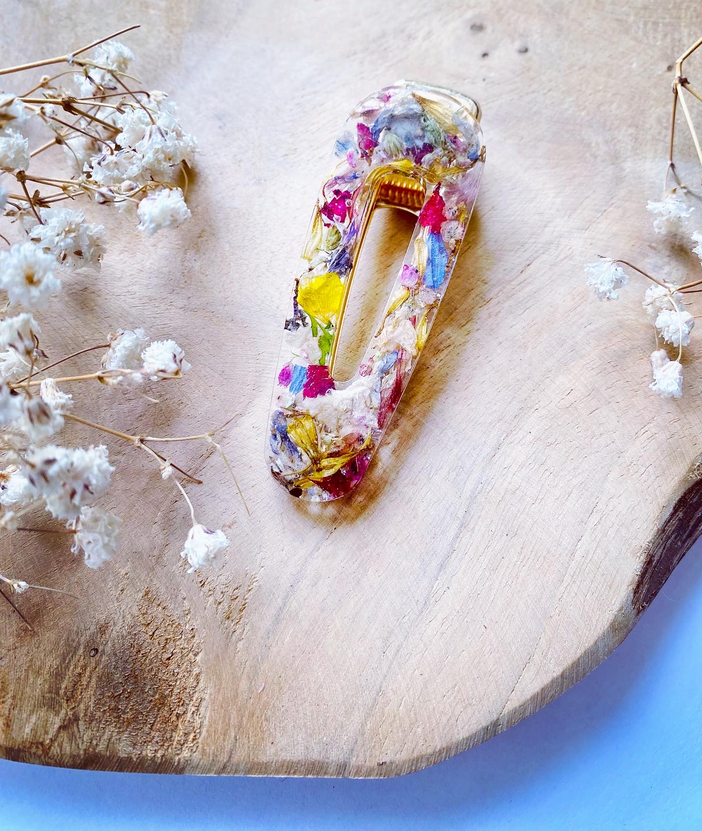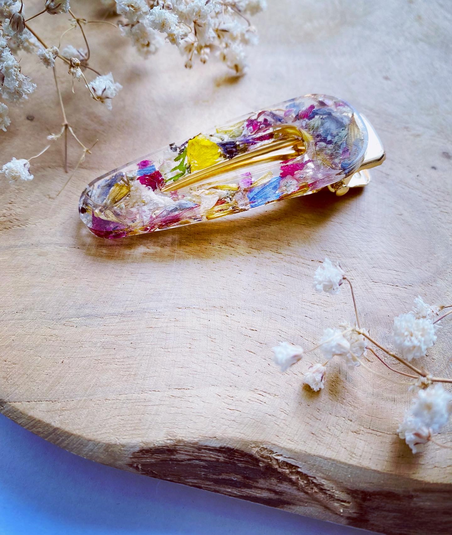 Spona do vlasů s pravými sušenými květy lučního kvítí. Velikost: 6 cm.