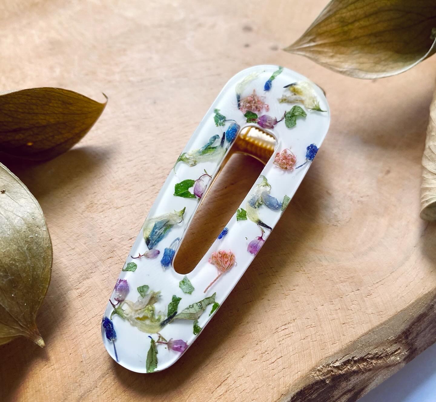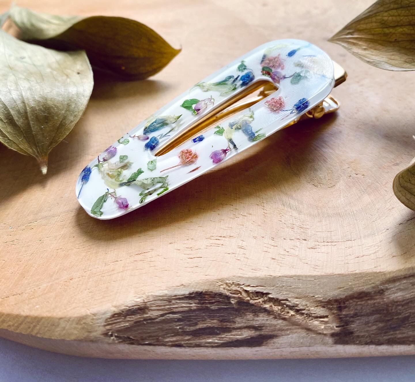 Spona do vlasů s pravými sušenými květy Lučního kvítí .Velikost: 6,5 cm.