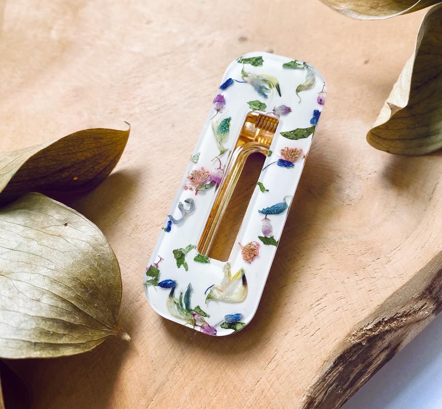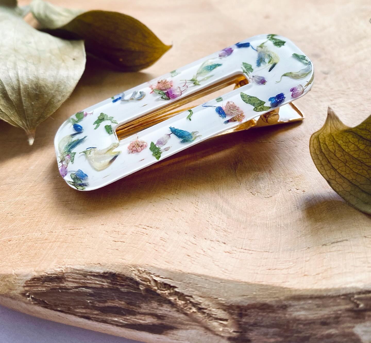 Spona do vlasů s pravými sušenými květy Lučního kvítí .Velikost: 6 cm.