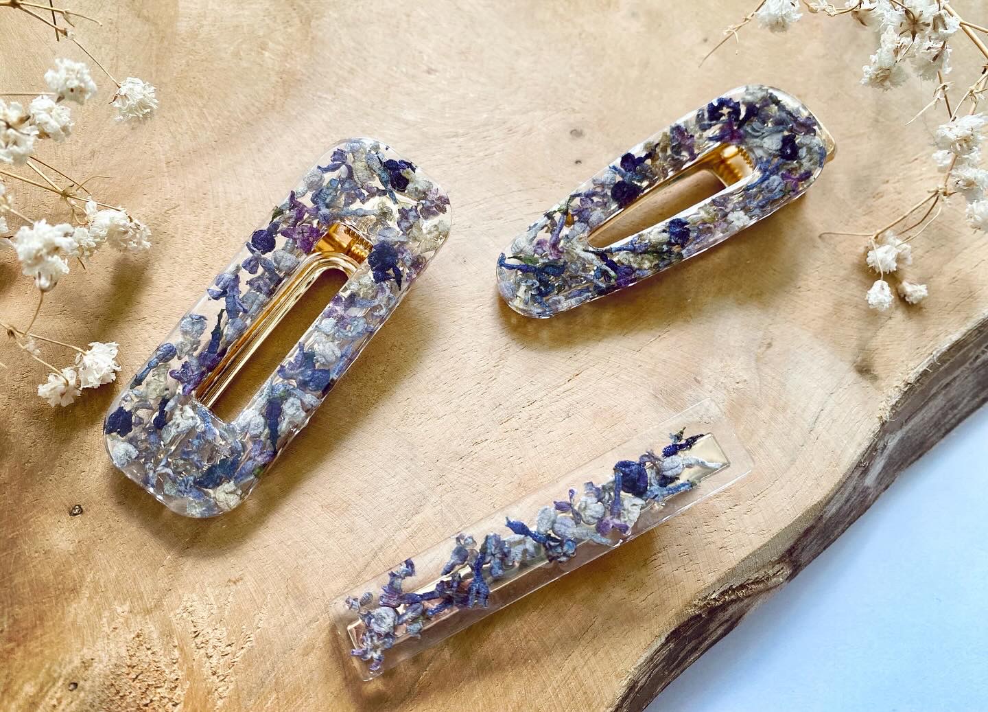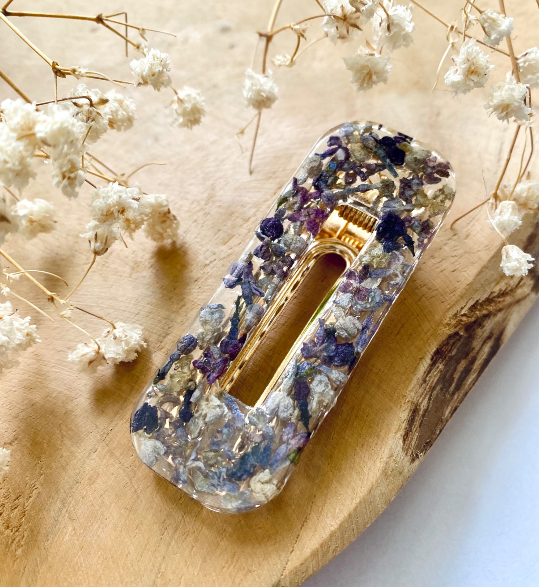 Spona do vlasů s pravými sušenými květy Šeříku.Velikost: 6 cm.