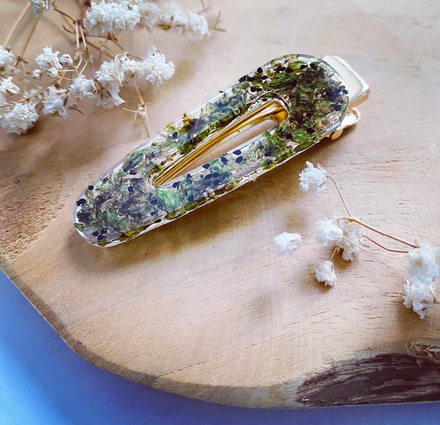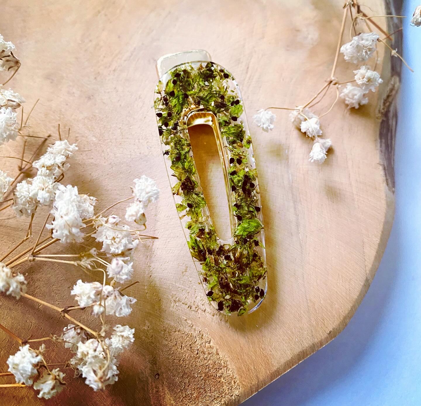 Spona do vlasů s pravým sušeným zeleným Mechem.Velikost: 6 cm.