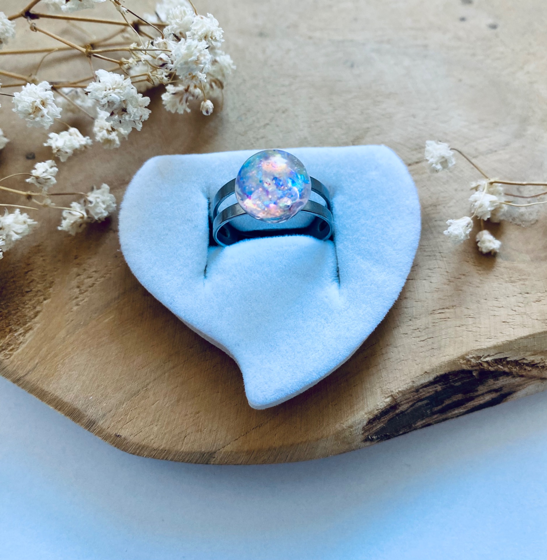 Třpytivá modrá kolekce.Prstýnek velká půlkulička s modrými třpytivými glitry.Velikost: univerzální (nastavitelný)Prstýnek: chirurgická ocel.