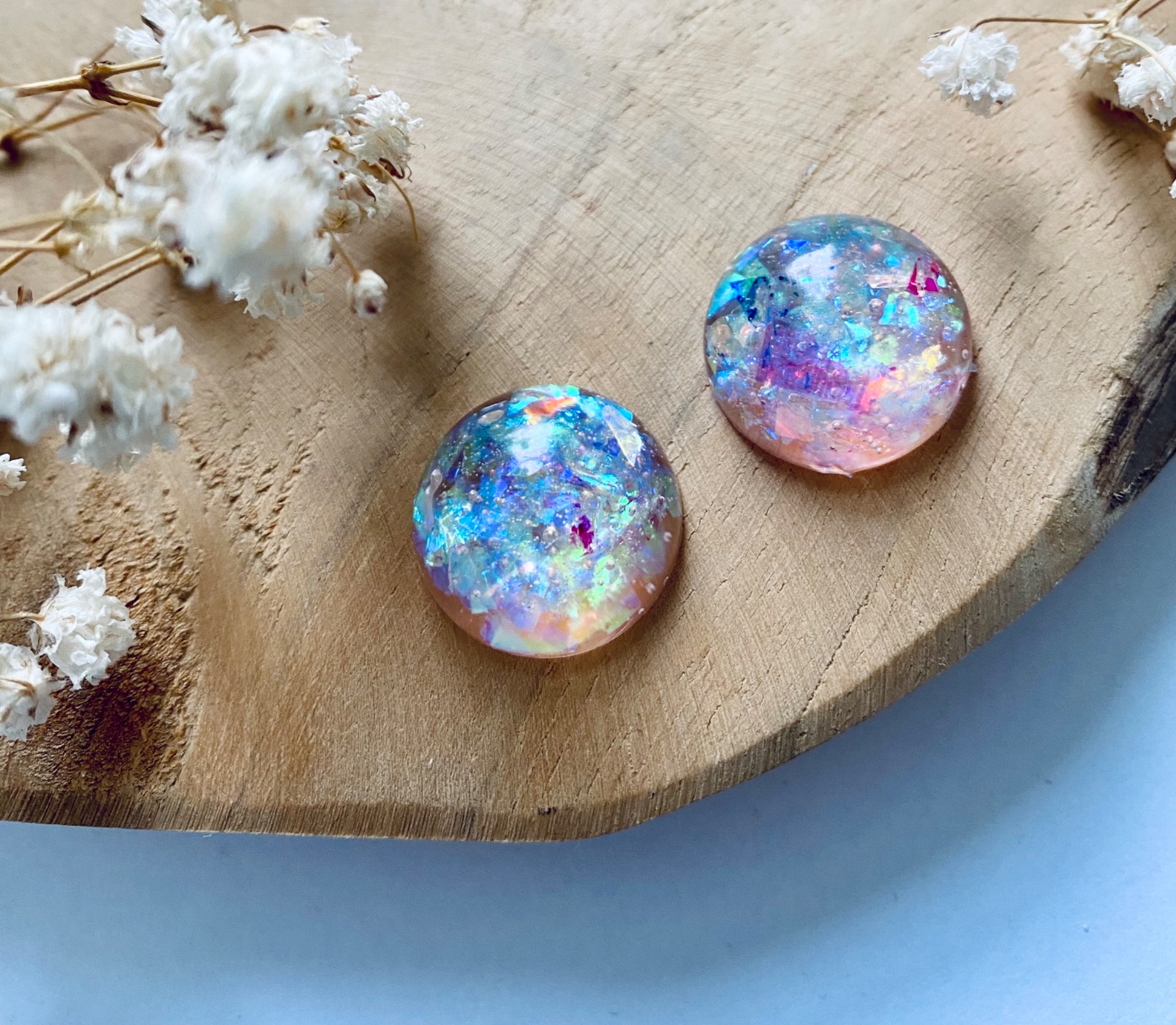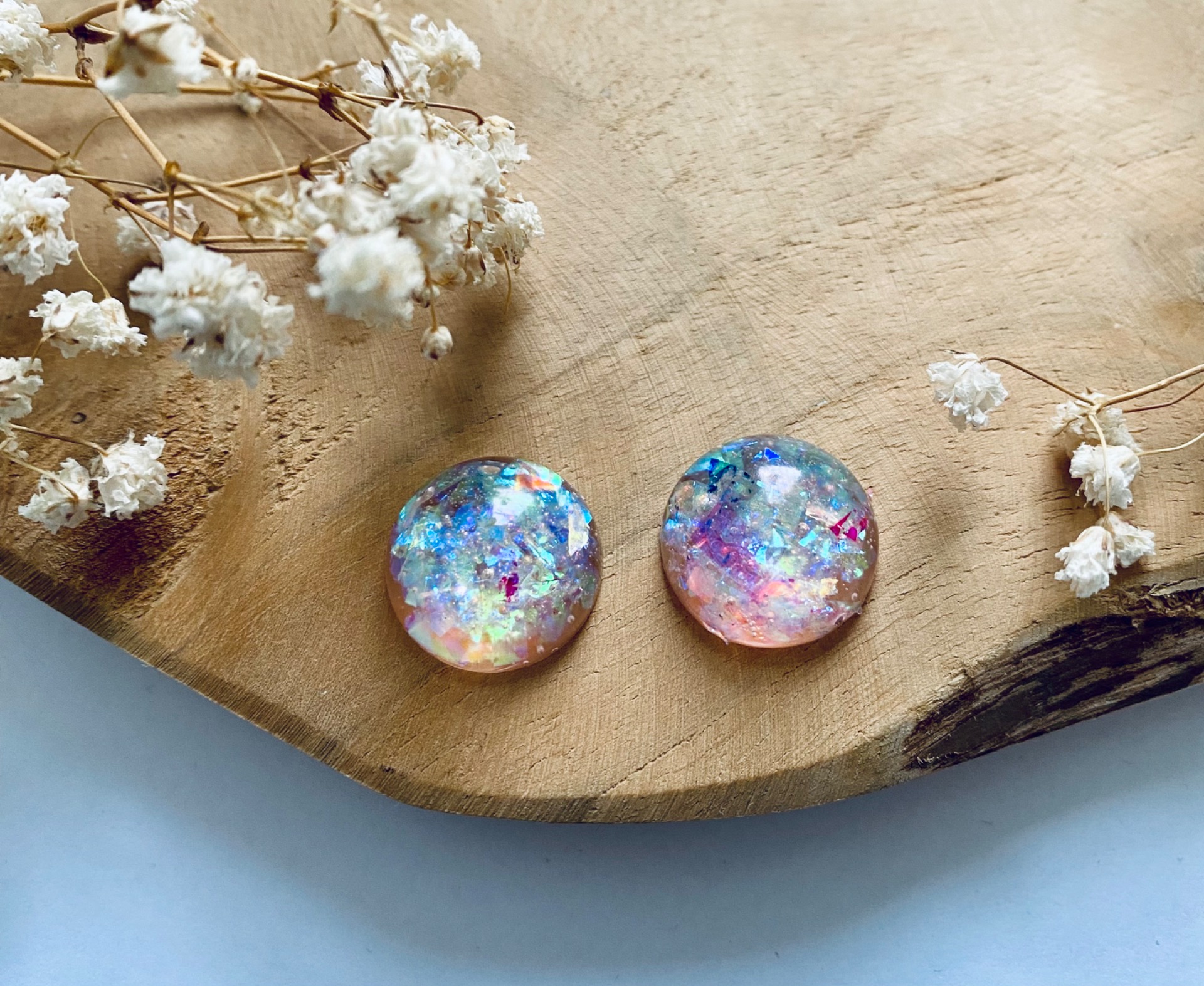 Třpytivá modrá kolekce.Náušnice velké půlkuličky s modrými glitry Velikost: 1,8 cm.Puzety: chirurgická ocel.