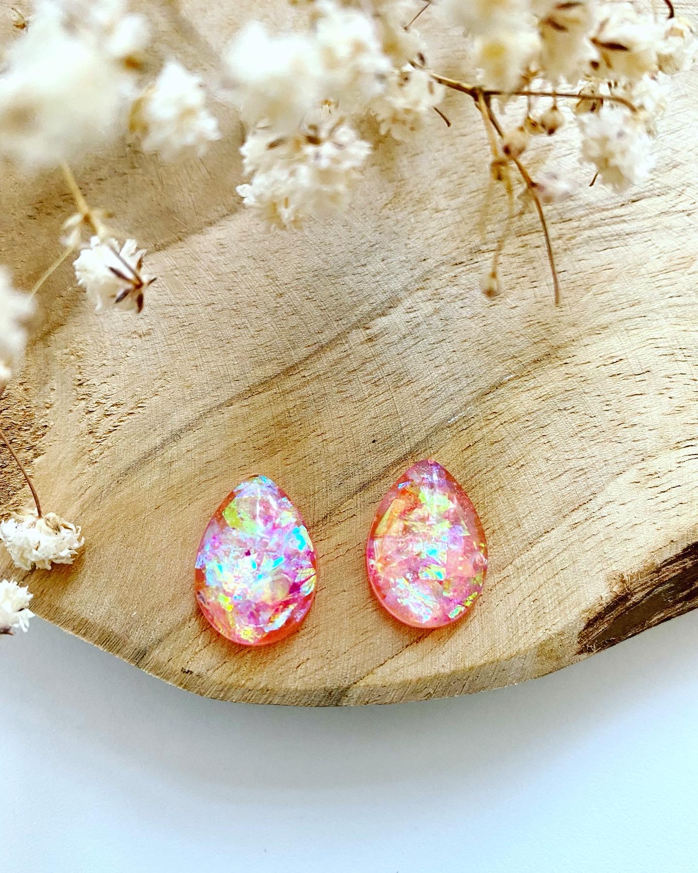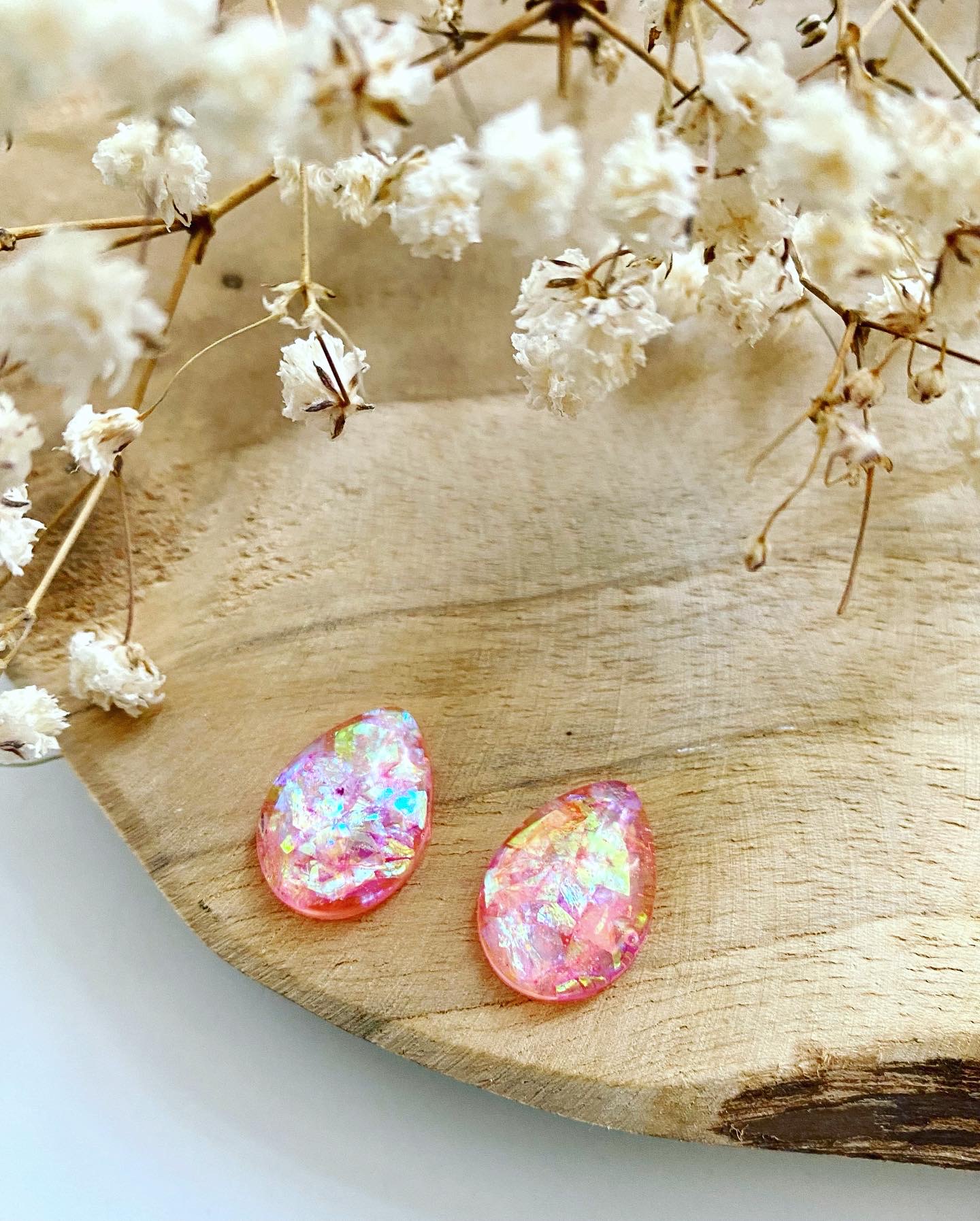 Třpytivá růžová kolekce.Náušnice malé kapky s růžovými glitry.Velikost: 1,7 cm.Puzety: chirurgická ocel.