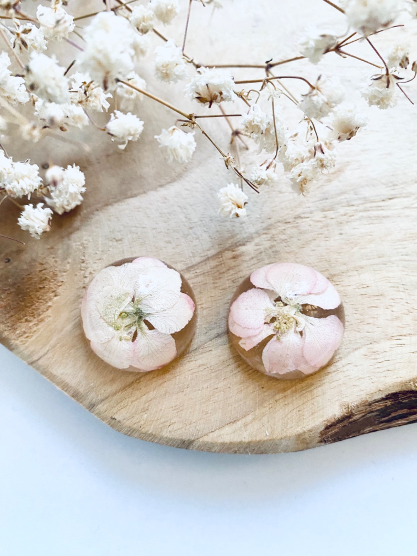 Náušnice velké půlkuličky s pravými sušenými květy.