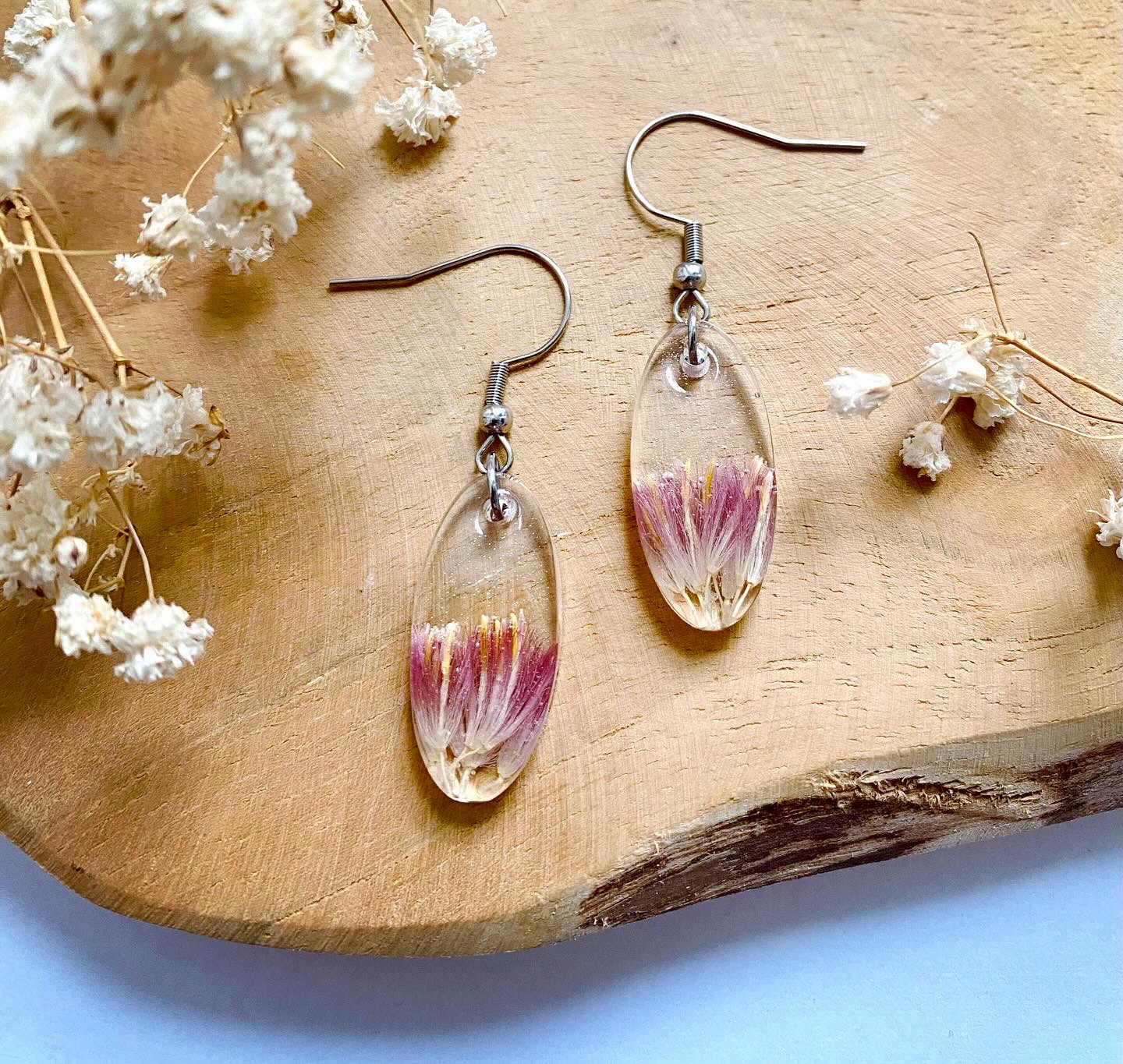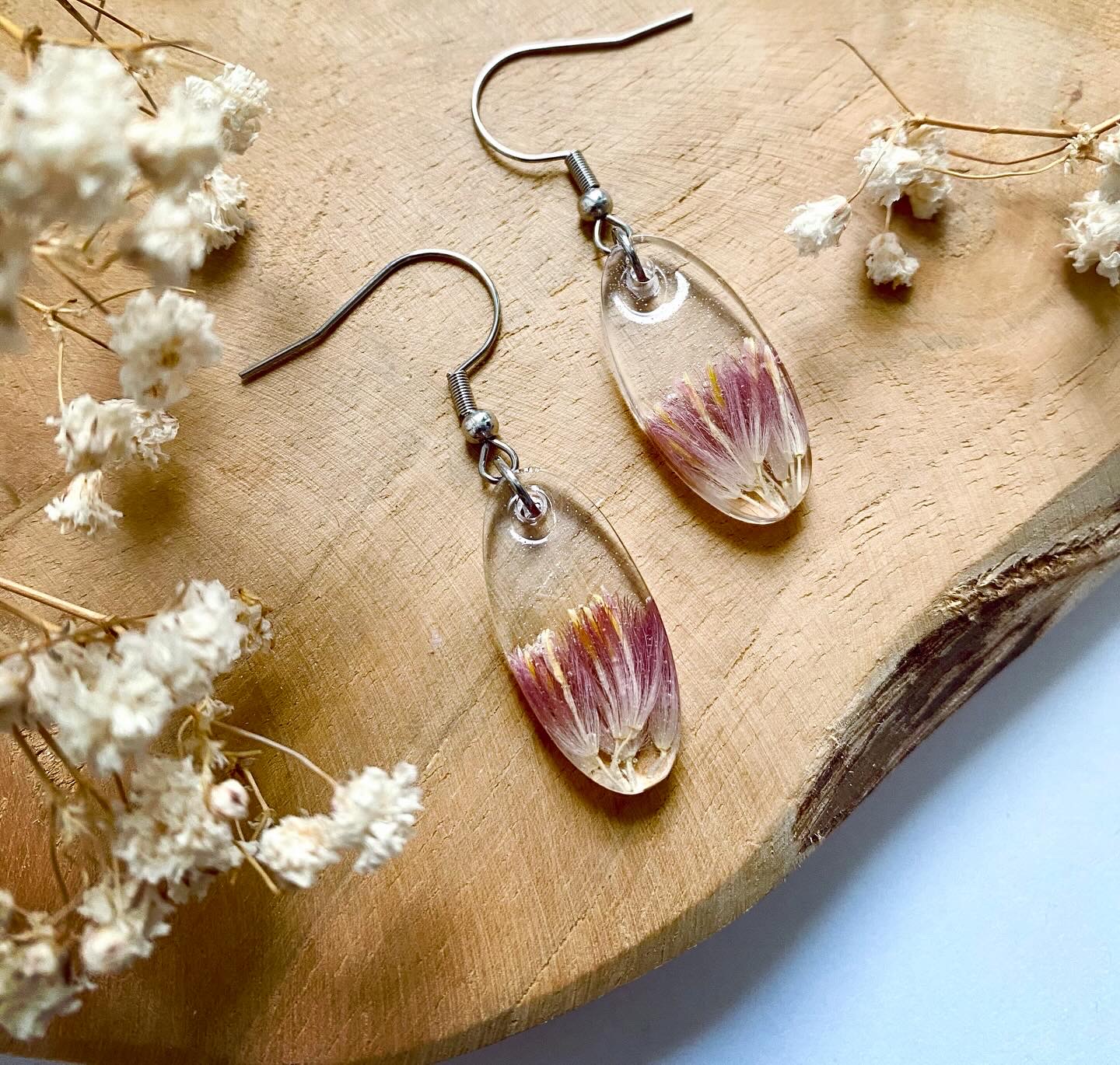 Náušnice visací ovály s pravým sušeným Chmýřím.Velikost: 2,5 cm.Háčky: Chirurgická ocel.