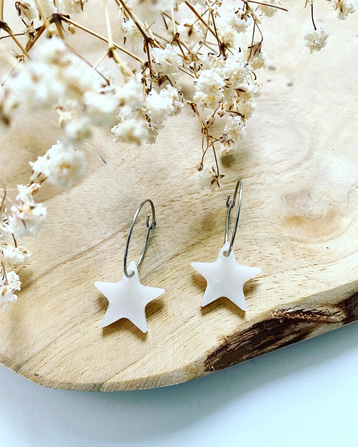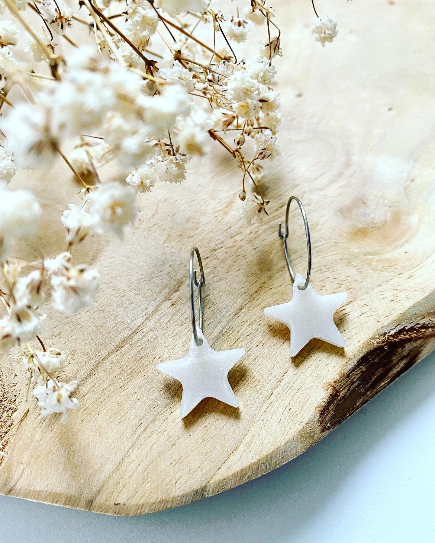 Zimní kolekce.Náušnice visací hvězdy.Velikost: 1,7 cm.Kruhy: chirurgická ocel.