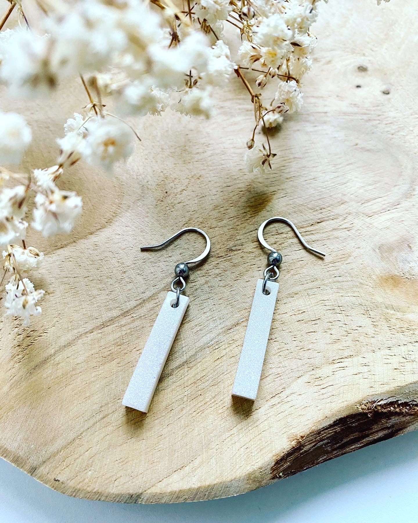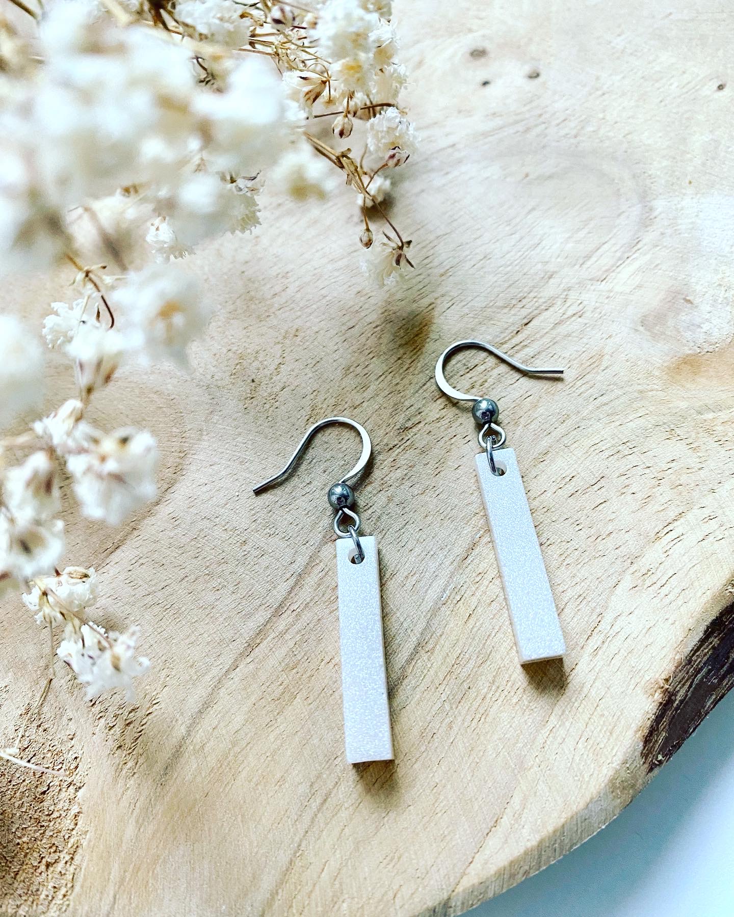 Zimní kolekce.Náušnice visací obdélníky.Velikost: 2,5 cm.Háčky: chirurgická ocel.