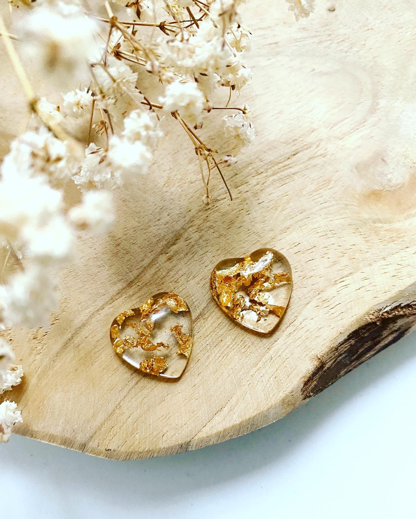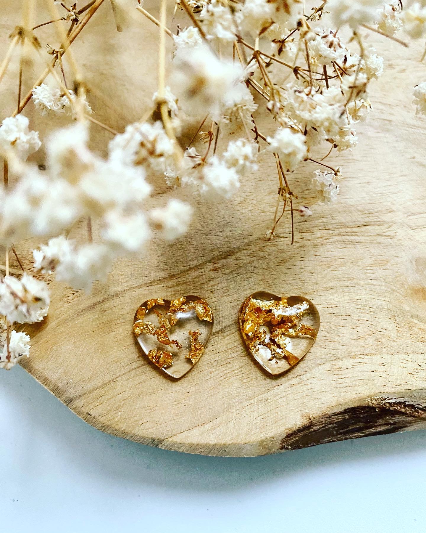 Zlatá kolekce.Náušnice malé srdíčka se zlatými plátky.Velikost: 1,7 cm.Puzety: chirurgická ocel.