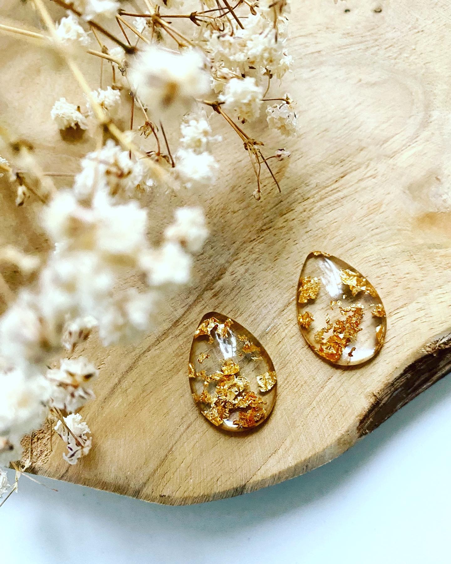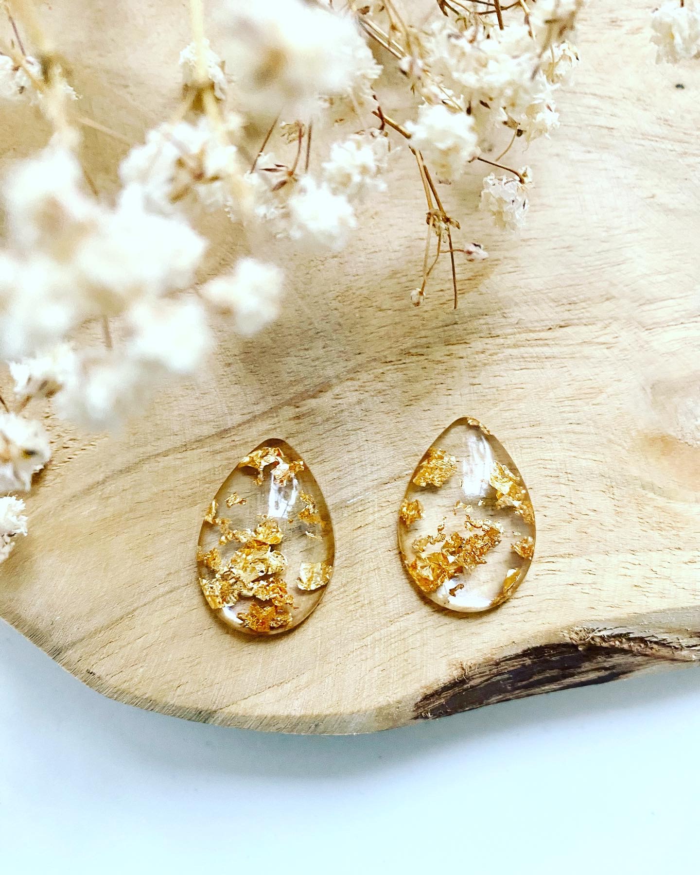 Zlatá kolekce.Náušnice velké kapky se zlatými plátky.Velikost: 1,8 cm / 2,4 cm.Puzety: chirurgická ocel.
